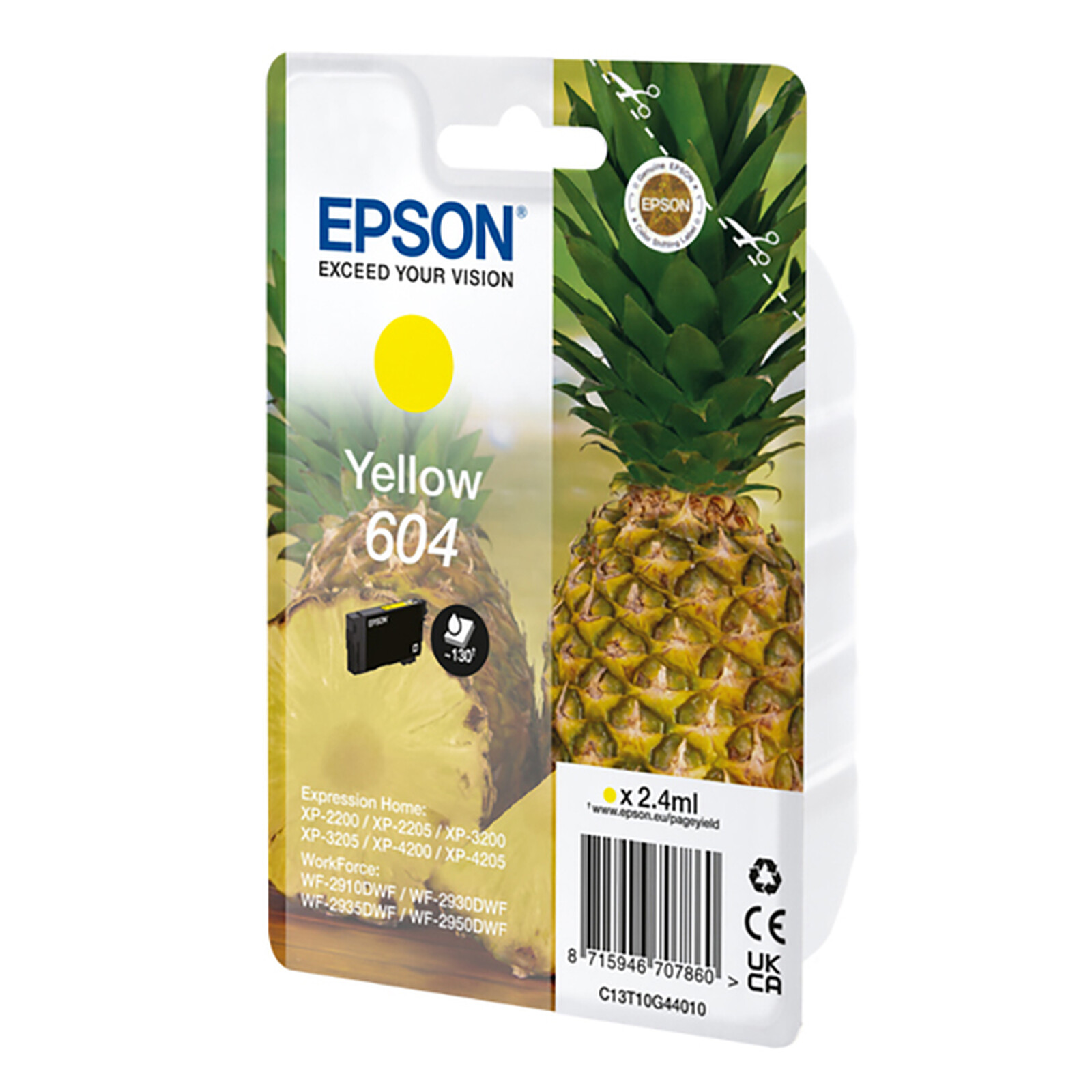 Fournissant une solution d’impression fiable à faible coût, cette cartouche d’encre individuelle bénéficie du programme de Recherche et Développement de grande envergure d’Epson. Cette cartouche d’encre Epson Ananas Jaune 604 répondra favorablement à vos besoins quotidiens grâce à sa capacité de 2.4 ml. Optez pour la fiabilité et une qualité supérieure pour vos impressions et découvrez un résultat à la hauteur de vos attentes pour imprimer jusqu’à 130 pages.