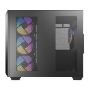 Le boitier moyen tour Antec C5 ARGB est un écrin pour la mise en évidence de votre setup gaming grâce à sa vue dégagée à 270° avec sa façade et son panneau latéral en verre trempé 4 mm. Côté refroidissement, rien n’est laissé au hasard avec 7 ventilateurs 120 mm ARGB PWM qui bénéficie de la conception mesh sur le côté et le dessus ainsi que la possibilité de faire cohabiter 3 watercooling AiO.