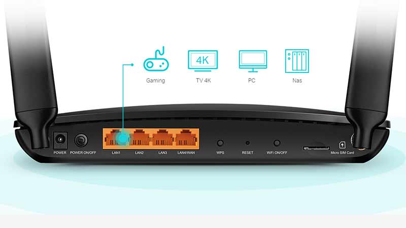 Le modem/routeur Archer MR600 vous propose une polyvalence et une praticité sans pareille. La possibilité de créer rapidement un puissant réseau sans fil peut être un avantage. L’Archer MR600 de TP-Link est la solution parfaite, que vous soyez chez vous, au bureau ou que vous travailliez depuis un autre endroit. Branchez-le et améliorez votre confort, vos loisirs mais aussi votre productivité où que vous vous trouviez en restant connecté dans tout un éventail d’environnements. Dans votre si agréable « chez vous », depuis un salon professionnel jusqu’à votre hôtel, dans votre environnement professionnel, l’Archer MR600 vous connectes. Mettant à votre disposition un port WAN/LAN, l’Archer MR600 vous permet de profiter d’une vaste variété de types de connexion incluant câble, fibre et modems DSL.